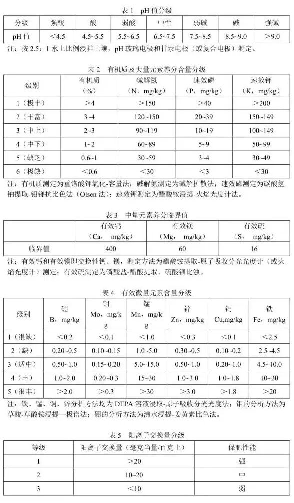 由于不同作物所需养分不同和不同土壤的养分供应特性不同,因此,对于不同土壤和不同作物来说,确定土境养分等级的具体指标也有差异。